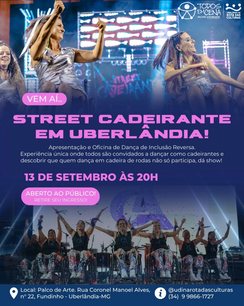 A Cia. Street Cadeirante é pioneira e referência nacional em dança inclusiva. O propósito é proporcionar ao público uma experiência artística de alto nível, aliando performance e sensibilização para a valorização da pessoa com deficiência. Essa experiência promove empatia, desconstrução de preconceitos e valorização da diversidade corporal.