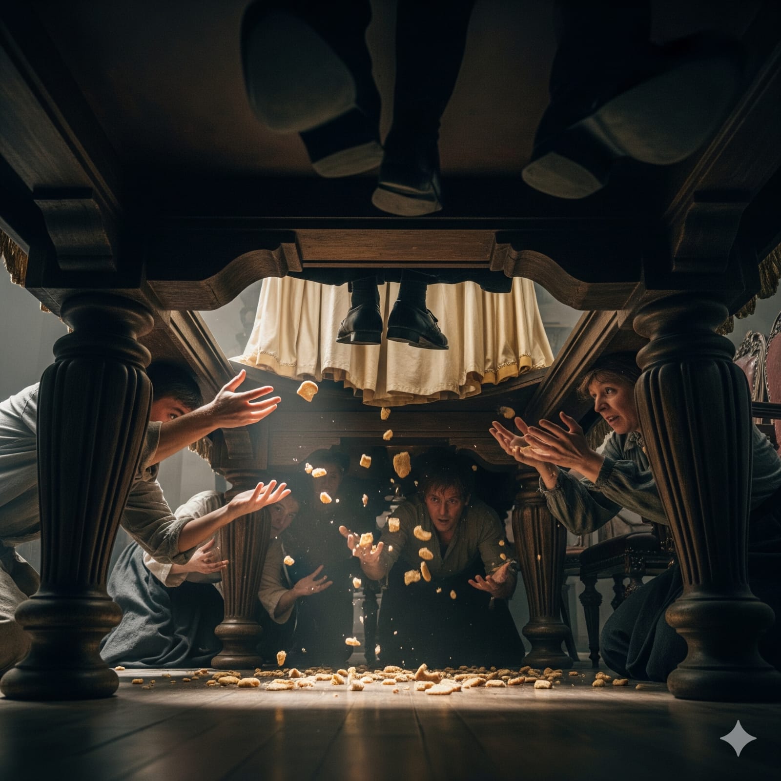 Vamos votar o que iremos deixar cair da mesa. Os plebeus esperam debaixo, com certeza - talvez migalhas, sobras.